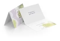 Invitationer trykt i fuld farve (CMYK), ensidet eller tosidet, med mulighed for personalisering. Mulig falsning: 1 fals langs den lange eller korte side, 2 false for invitationer foldet til DL (i "Z" eller "U").