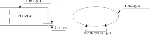 - Nedskæringerne skal være parallelle med den kortere side af plomben – det er oftest fra denne side, at brugeren vil forsøge at fjerne sikkerheden.
