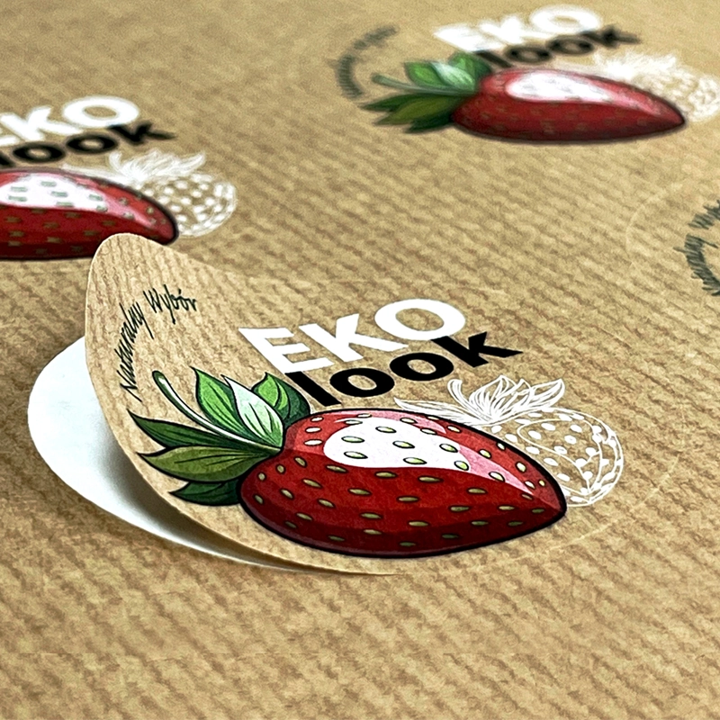 Etiketter i vilkårlige former skæres med plotter i det valgte format (dimensioner indtastet i kalkulatoren). Hvis du vælger muligheden for skæring til enkelte anvendelser, vil du modtage rektangulære elementer skåret med guillotine – de vil være lidt større end selve etiketten (skåret indeni). Dette gør etiketterne klar til direkte uddeling, pakning eller tilføjelse som en gadget eller reklameartikel.